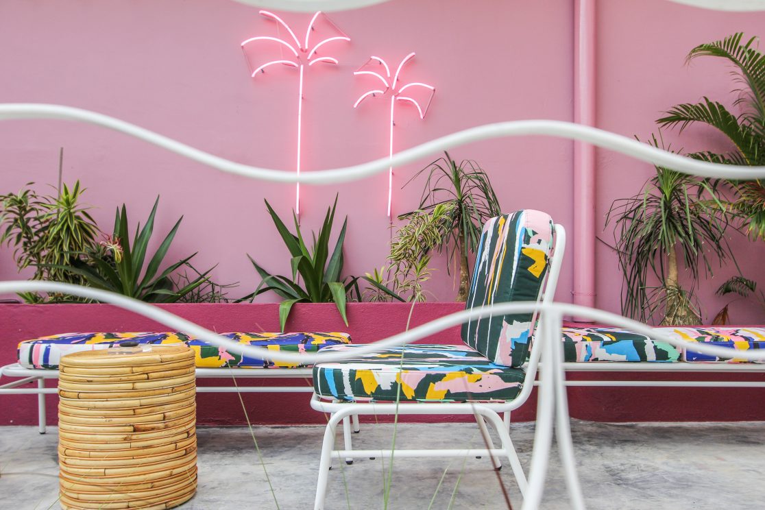 The final result is a unique pool bar with a lazy afternoon/sunset vibe that wouldn’t look out of place in a Wes Anderson film.