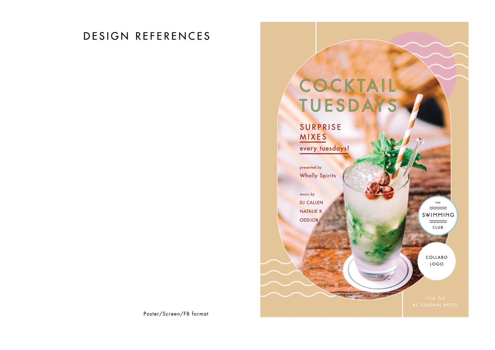 The Swimming Club is an eclectic pool bar on the 11th floor of the KL Journal Hotel. Inspired by design cues from a Palm Springs/Mid Century Modernist aesthetic with a Tropical Malaysian touch.